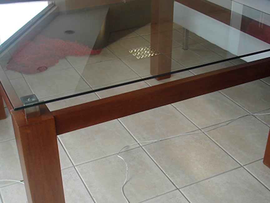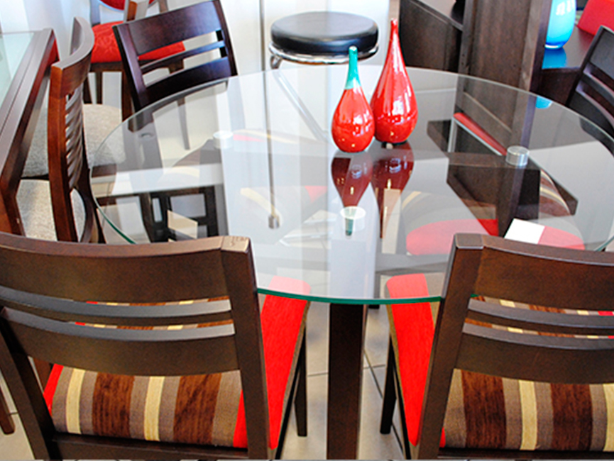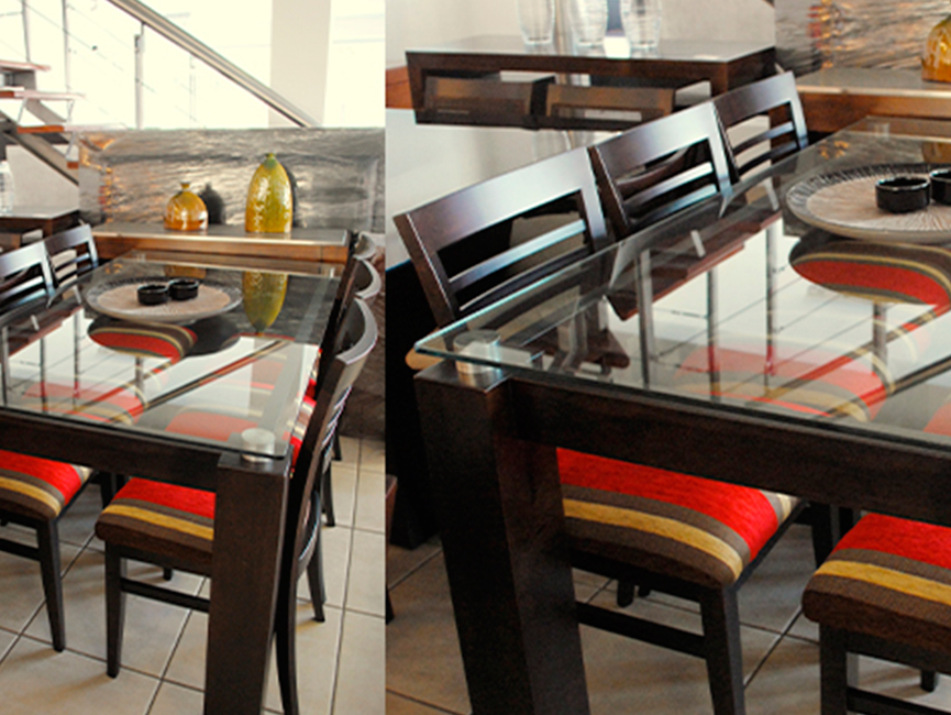 MESA PUENTE CON RAJA DE VIDRIO Y SILLAS HUMBERTO