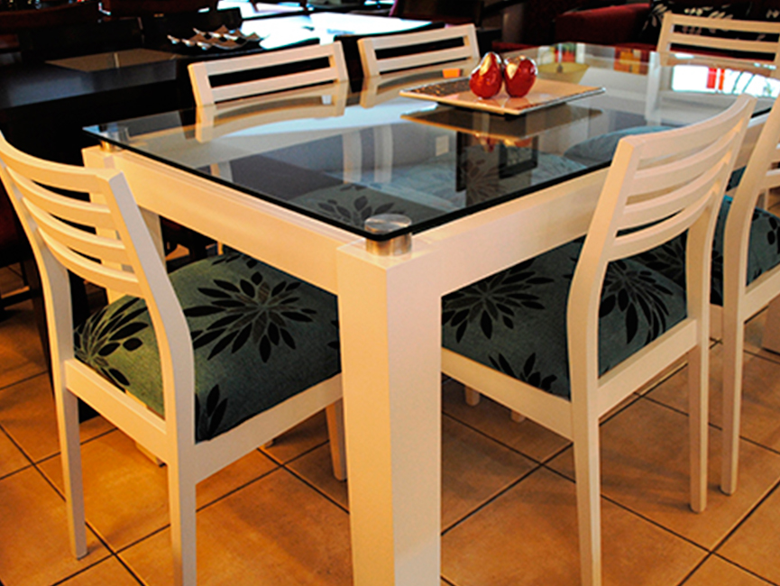 MESA PARA CUADRADA CON VIDRIO Y SILLAS LORENZO